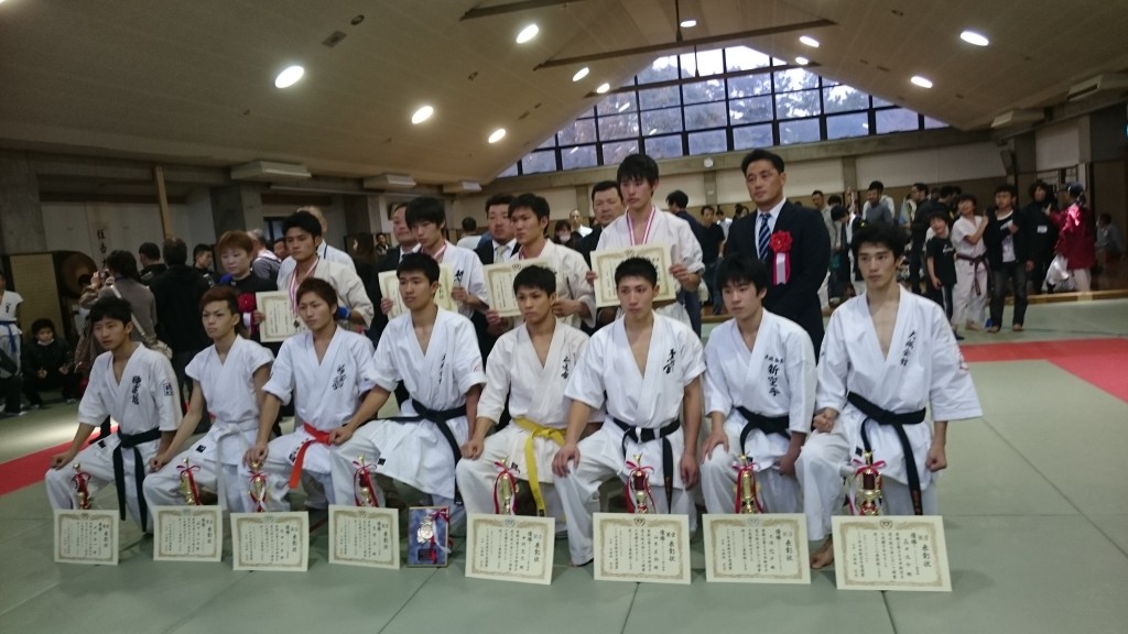 各階級の入賞者。後列の向かって右、主催者の方のとなりが長男。中量級での準優勝。